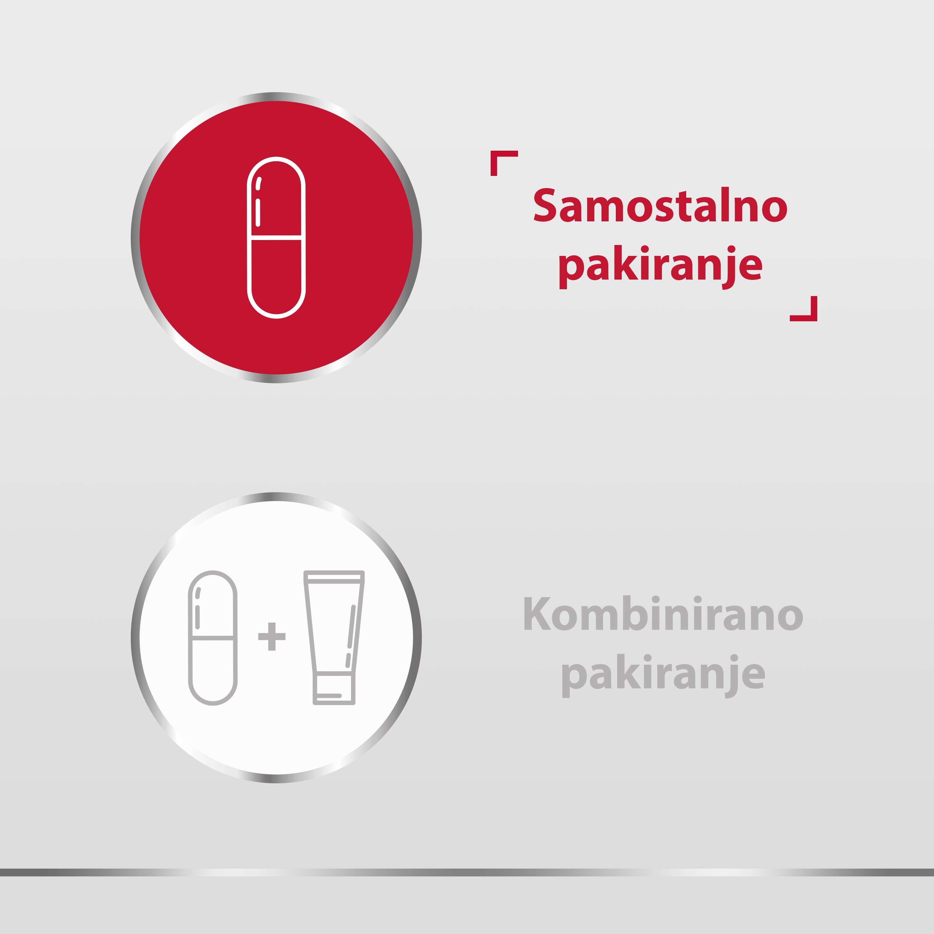 Kombinirano pakiranje sadržava lijek za unutarnju primjenu i kremu za vanjsku primjenu, koja je korisna u borbi protiv neugodnih simptoma na stidnici. Samostalno pakiranje (samo lijek za unutarnju primjenu) prikladno je kada vam ne smetaju vanjski svrbež ili peckanje.