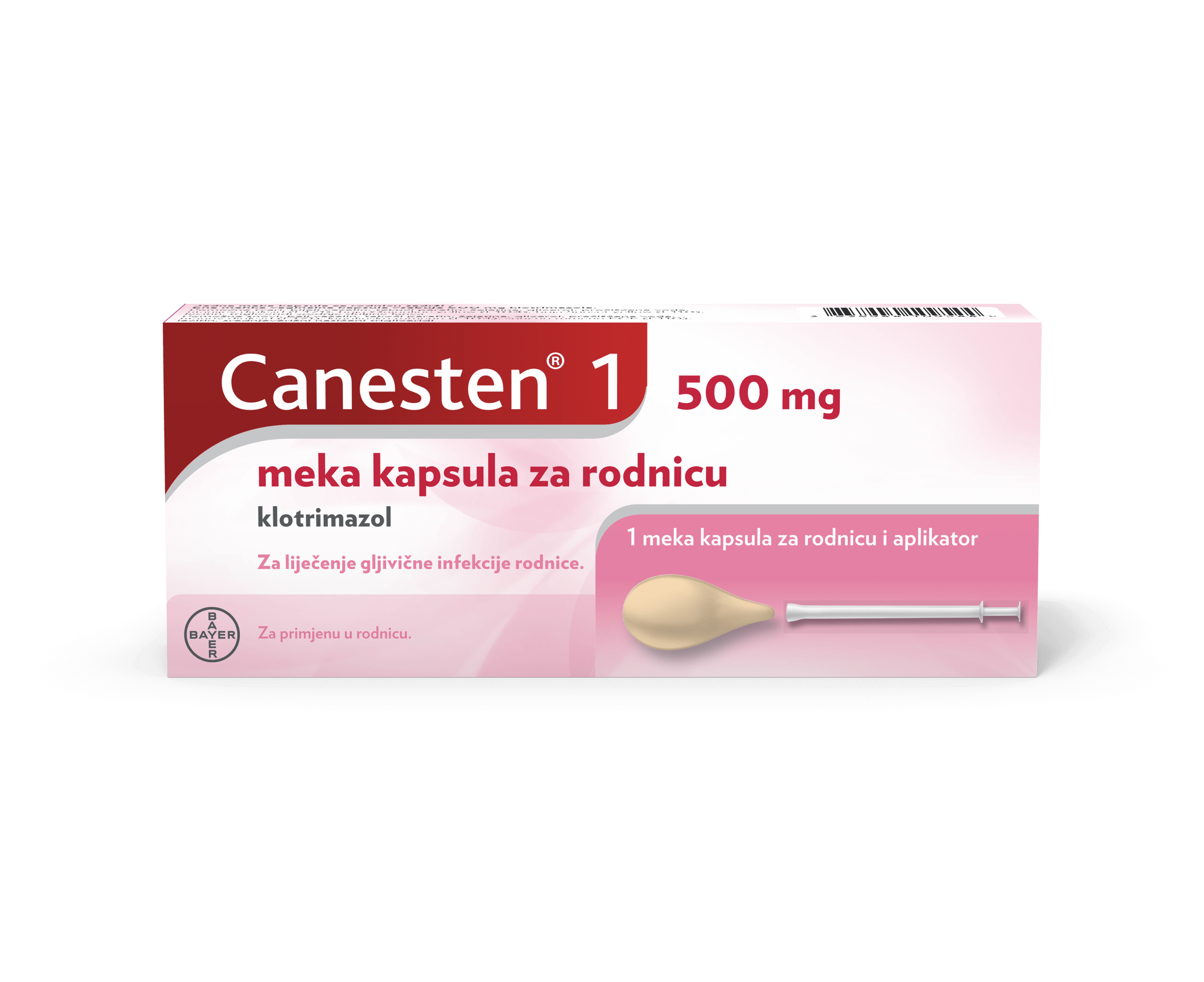 Canesten® je najprodavanija robna marka na svijetu za liječenje gljivičnih vaginalnih infekcija.1 Canesten® 1 500 mg meka vaginalna kapsula pruža vam učinkovito rješenje za liječenje jednostavnih vaginalnih gljivičnih infekcija. U većini slučajeva samo jedna kapsula od 500 mg, koju stavite navečer prije spavanja, dovoljna je za liječenje jednostavne gljivične infekcije rodnice. Meka kapsula za rodnicu omogućuje ugodno i jednostavno umetanje. Ako niste trudni, koristite priloženi aplikator za umetanje kapsule.